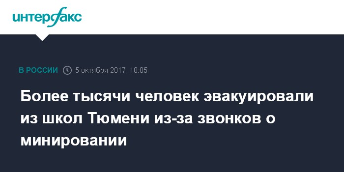 Москва. 5 октября. INTERFAX.RU - В четверг вечером в Тюмени были эвакуированы семь школ, сообщили агентству "Интерфакс" в пресс-службе главного управления МЧС по региону.