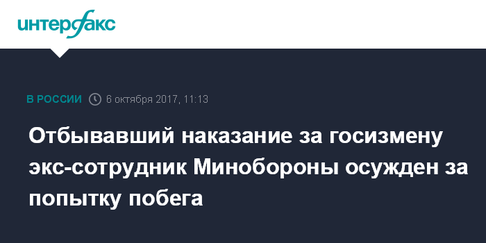 Отбывавший наказание за госизмену экс-сотрудник Минобороны осужден за попытку побега