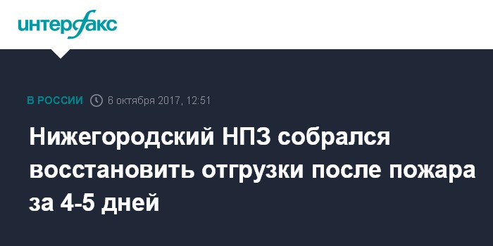 Нижегородский НПЗ собрался восстановить отгрузки после пожара за 4-5 дней