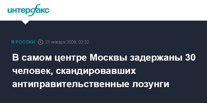 "Во вторник вечером в центре Москвы в разных местах было замечено несколько групп молодых людей, которые выкрикивали антиправительственные лозунги, в том числе в районе станции метро "Охотный ряд", - рассказал "Интерфаксу" источник в управлении информацией общественных связей ГУВД Москвы.