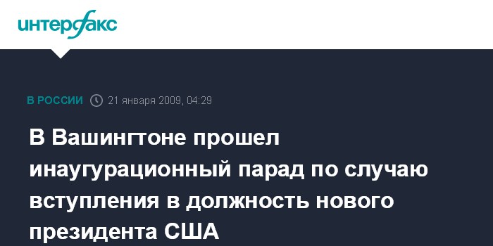 Вашингтон. 20 января. ИНТЕРФАКС - Красочный парад из военных и гражданских, спортсменов и пожарников, барабанщиков и трубачей, представителей различных американских штатов и национальных меньшинств прошел во вторник перед Белым домом, за которым наблюдали новый президент США Барак Обама и вице-президент Джозеф Байден.