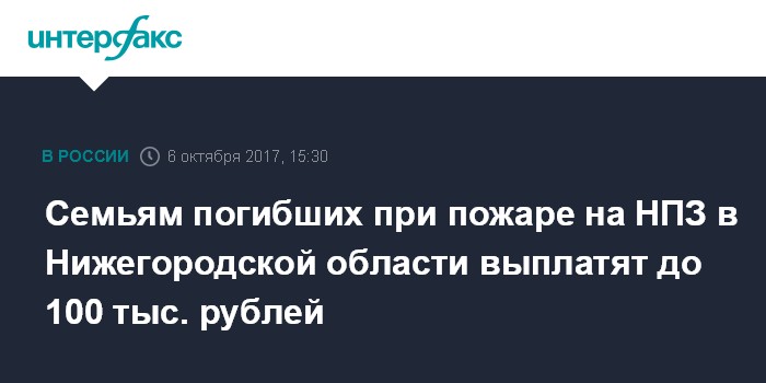Семьям погибших при пожаре на НПЗ в Нижегородской области выплатят до 100 тыс. рублей