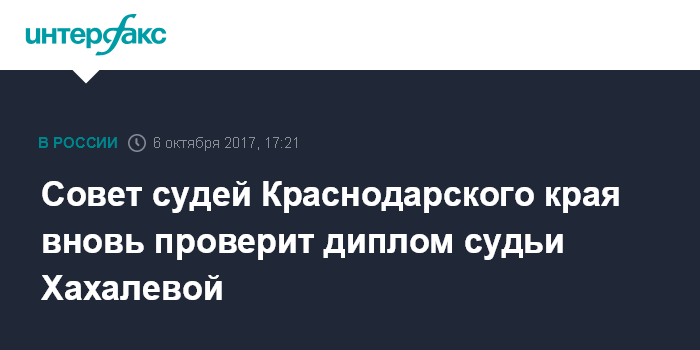 Совет судей Краснодарского края вновь проверит диплом судьи Хахалевой