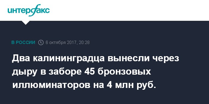 Два калининградца вынесли через дыру в заборе 45 бронзовых иллюминаторов на 4 млн руб.