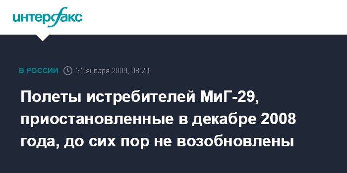 Полеты истребителей МиГ-29, приостановленные в декабре 2008 года, до сих пор не возобновлены