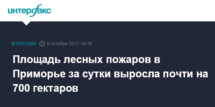Площадь лесных пожаров в Приморье за сутки выросла почти на 700 гектаров