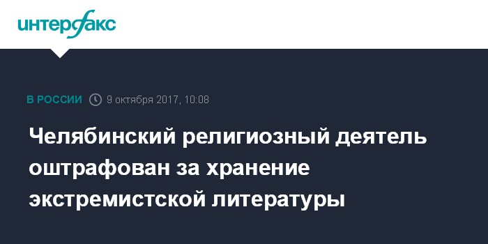 Челябинский религиозный деятель оштрафован за хранение экстремистской литературы