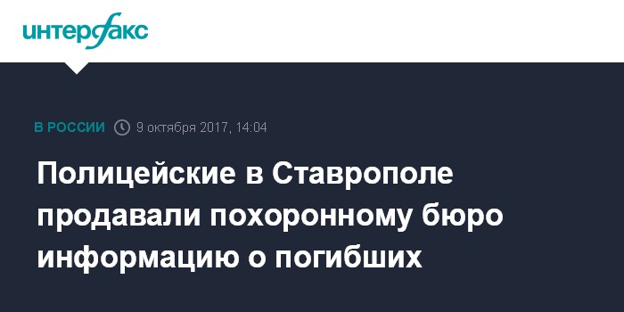 Полицейские в Ставрополе продавали похоронному бюро информацию о погибших