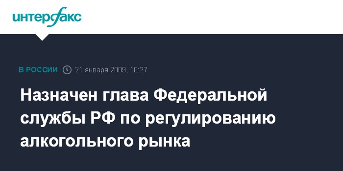 Назначен глава Федеральной службы РФ по регулированию алкогольного рынка