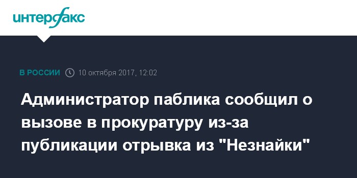 Администратор паблика сообщил о вызове в прокуратуру из-за публикации отрывка из "Незнайки"
