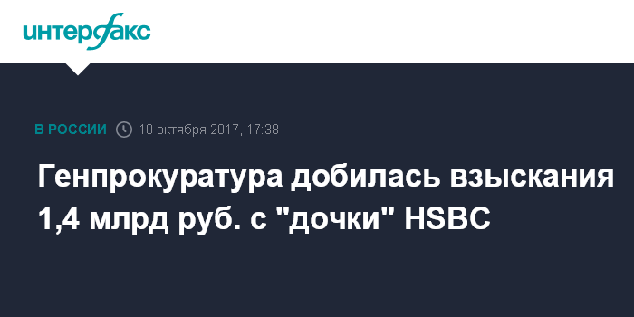 Генпрокуратура добилась взыскания 1,4 млрд руб. с "дочки" HSBC