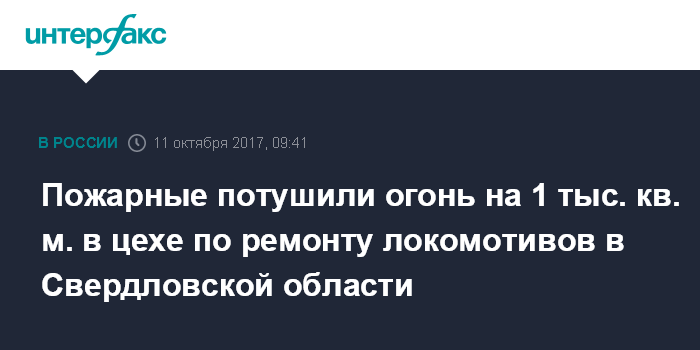 Москва. 11 октября. INTERFAX.RU - Пожарные справились с огнем в цехе по ремонту локомотивов на улице Челюскинцев в городе Сысерти Свердловской области, сообщили "Интерфаксу" в пресс-службе ГУ МЧС России по региону.