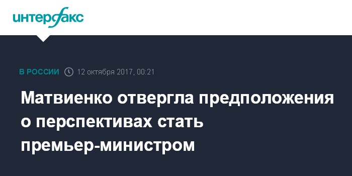 Москва. 12 октября. INTERFAX.RU - Спикер Совета Федерации Валентина Матвиенко опровергла слухи о том, что она может возглавить кабинет министров.