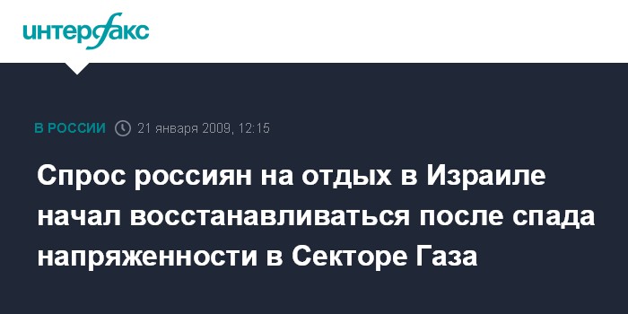 Москва. 21 января. INTERFAX.RU - Российские туристы отреагировали на спад напряженности вокруг сектора Газа и начали вновь бронировать туры в Израиль, сообщают туроператоры.