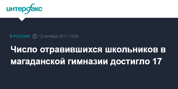 Москва. 12 октября. INTERFAX.RU - В Магадане растет число отравившихся школьников гимназии №30.