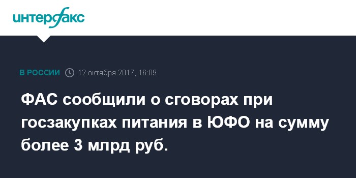 ФАС сообщили о сговорах при госзакупках питания в ЮФО на сумму более 3 млрд руб.