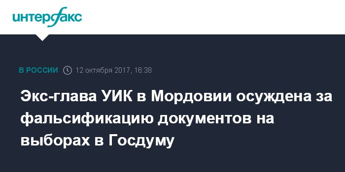 Москва. 12 октября. INTERFAX.RU - Октябрьский районный суд Саранска в четверг вынес приговор бывшему председателю участковой избирательной комиссии.