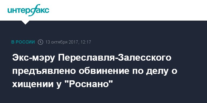 Экс-мэру Переславля-Залесского предъявлено обвинение по делу о хищении у "Роснано"