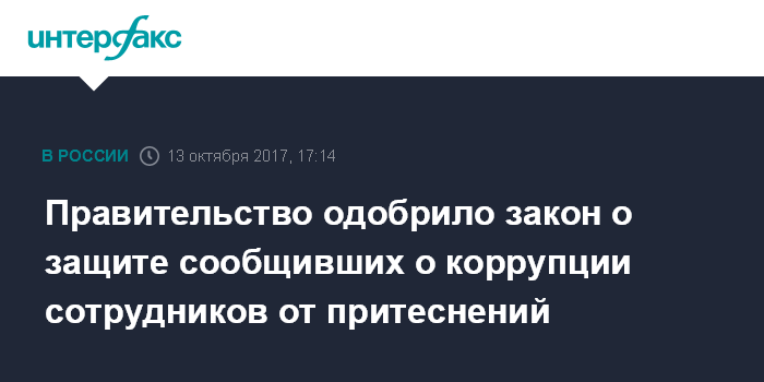 Правительство одобрило закон о защите сообщивших о коррупции сотрудников от притеснений
