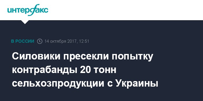 Москва. 14 октября. INTERFAX.RU - Шестеро граждан Украины, нарушивших госграницу РФ с целью контрабанды в Россию около двадцати тонн сельхозпродукции, задержаны сотрудниками Погрануправления ФСБ России по Белгородской и Воронежской областям совместно с сотрудниками МВД РФ.