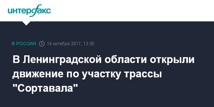 Москва. 14 октября. INTERFAX.RU - В Ленинградской области открыли для движения 14-километровый участок трассы А-121 "Сортавала", сообщает корреспондент "Интерфакса" с торжественной церемонии открытия движения.