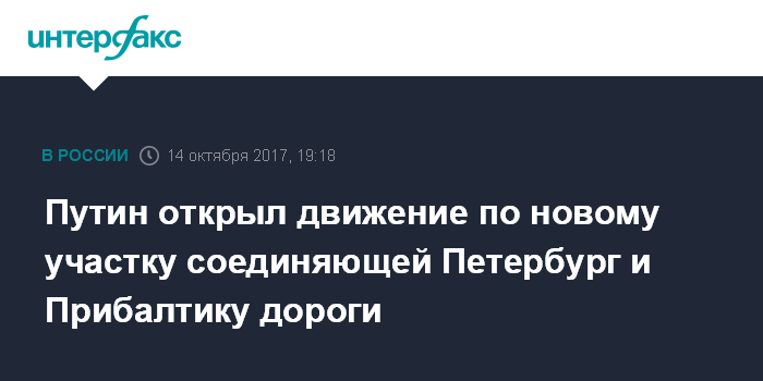 Путин открыл движение по новому участку соединяющей Петербург и Прибалтику дороги