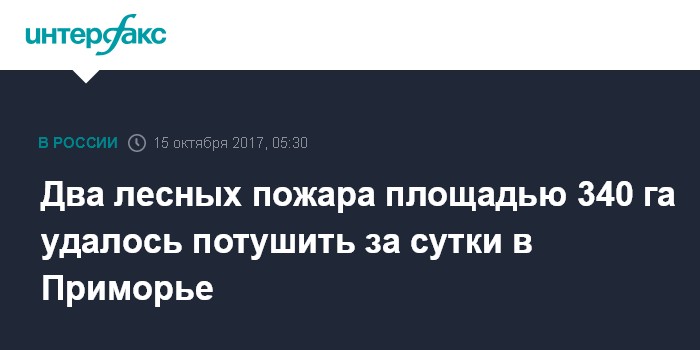 Как сообщалось, 12 октября власти ввели в Приморье особый противопожарный режим, до этого в четырех районах края был введен режим ЧС в лесах. В пятницу все лесные пожары в крае были локализованы.