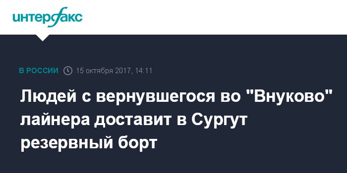 Людей с вернувшегося во "Внуково" лайнера доставит в Сургут резервный борт