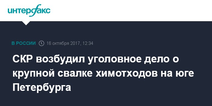 Москва. 16 октября. INTERFAX.RU - Уголовное дело возбуждено в Петербурге по факту организации крупной незаконной свалки химических отходов в Пушкинском районе Петербурга. Об этом сообщает пресс-служба Главного следственного управления СКР по городу в понедельник.