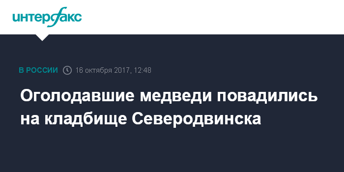 Москва. 16 октября. INTERFAX.RU - В Северодвинске (Архангельская область) закрыли для посещений кладбище из-за участившихся визитов медведей. Об этом сообщает пресс-служба администрации города.
