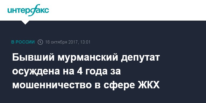 Бывший мурманский депутат осуждена на 4 года за мошенничество в сфере ЖКХ