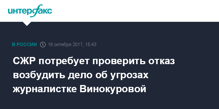 СЖР потребует проверить отказ возбудить дело об угрозах журналистке Винокуровой