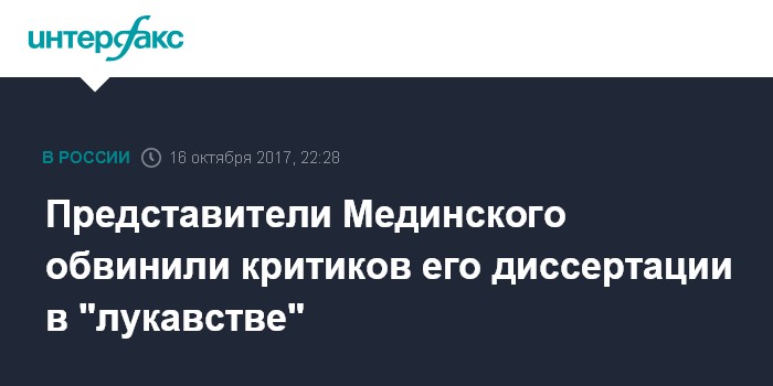 В начале октября Экспертный совет ВАК рекомендовал лишить министра культуры РФ Владимира Мединского ученой степени доктора исторических наук после проверки его диссертации. Окончательное решение по поводу ученой степени Мединского примет президиум ВАК на заседании 20 октября.