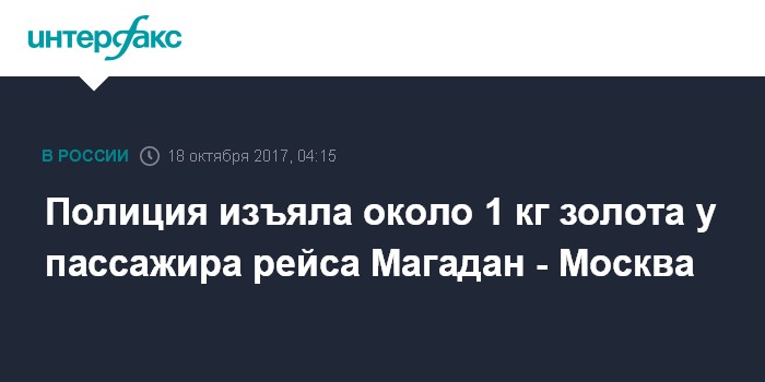 Москва. 18 октября. INTERFAX.RU - Полицейские во время предполетного досмотра пассажира авиарейса Магадан - Москва обнаружили тайник с промышленным золотом.