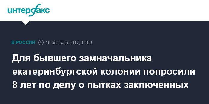Москва. 18 октября. INTERFAX.RU - Прокурор в Верх-Исетском суде Екатеринбурга попросил приговорить к длительным срокам лишения свободы бывшего заместителя начальника исправительной колонии N2 и пятерых бывших заключенных, обвиняемых в издевательствах над сокамерниками.