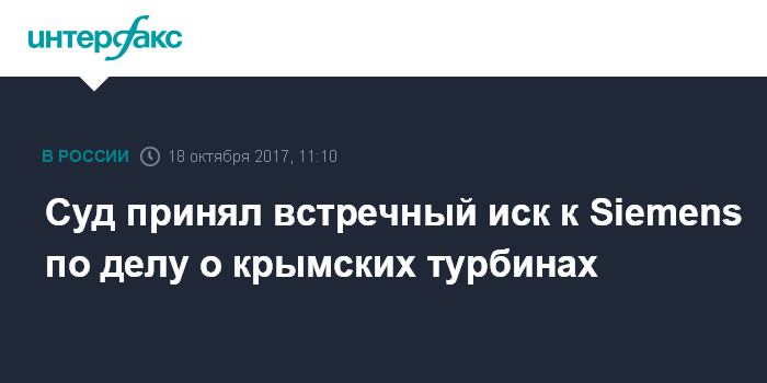 "Мы доказываем что "Сименс технологии газовых турбин", если бы знало о фактическом назначении - что установки будут использованы для Крыма - то никогда бы не пошло на подписание данного контракта. Соответствующее волеизъявление и намерение продавца было закреплено в самом контракте и в переписке после контракта", - сказал представитель Siemens. По его словам, принятие встречного иска или его возвращение не может ничего изменить по решению по основному иску. "Турбины не должны поставляться в другие регионы, признание недействительности условий контракта о конечном пункте не умаляет аргумент, что "Сименс технологии газовых турбин" был обманут и введен в заблуждение", - сказал представитель немецкой стороны.