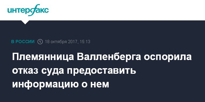 Племянница Валленберга оспорила отказ суда предоставить информацию о нем