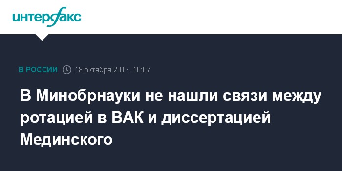 Ранее Минкультуры переадресовало в Минобрнауки вопрос об изменении состава ВАК и возможной связи этого с ситуацией вокруг диссертации министра культуры Мединского в Минкультуры.