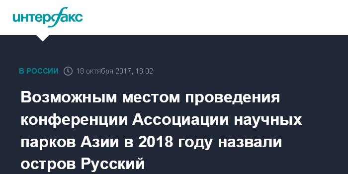 Возможным местом проведения конференции Ассоциации научных парков Азии в 2018 году назвали остров Русский