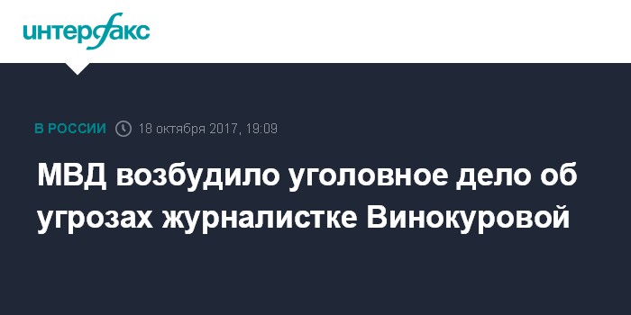МВД возбудило уголовное дело об угрозах журналистке Винокуровой