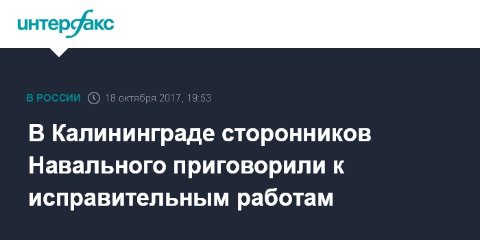 Москва. 18 октября. INTERFAX.RU - Суд Ленинградского района Калининграда признал виновными двоих сторонников Алексея Навального и приговорил их к исправительным работам.