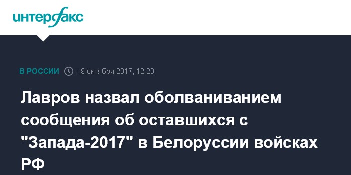 Лавров назвал оболваниванием сообщения об оставшихся с "Запада-2017" в Белоруссии войсках РФ