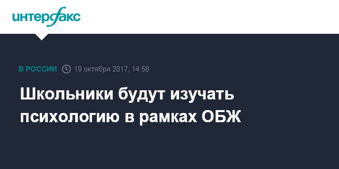 Москва. 19 октября. INTERFAX.RU - Школьники 3-11-х классов будут изучать психологию в рамках курса ОБЖ по учебнику, который готовит Центр психиатрии и наркологии Сербского, сообщил внештатный психиатр Минздрава, гендиректор Центра Зураб Кекелидзе.