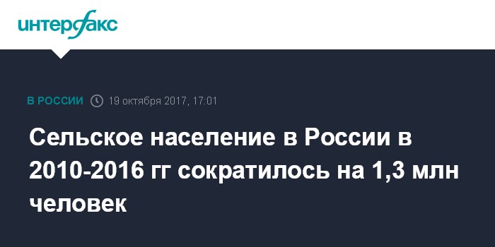 Сельское население в России в 2010-2016 гг сократилось на 1,3 млн человек