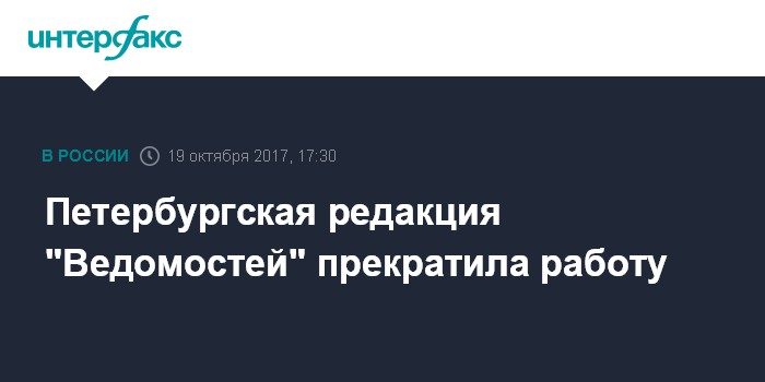 Москва. 19 октября. INTERFAX.RU - Петербургская редакция газеты "Ведомости" прекращает работу, городская вкладка издания в четверг вышла в последний раз.