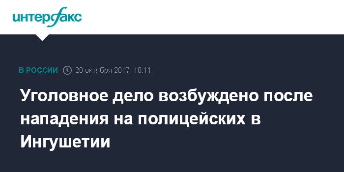 Москва. 20 октября. INTERFAX.RU - Следственные органы Ингушетии возбудили уголовное дело по факту нападения на сотрудников полиции на стационарном посту. Об этом сообщили агентству "Интерфакс" в пресс-службе следственного управления СКР по региону.