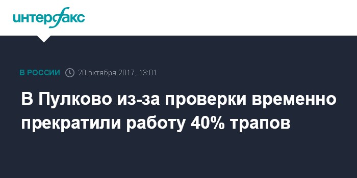 Москва. 20 октября. INTERFAX.RU - Около 40% всех пассажирских трапов, эксплуатируемых в петербургском аэропорту "Пулково", временно выключены из работы в связи с проверкой.