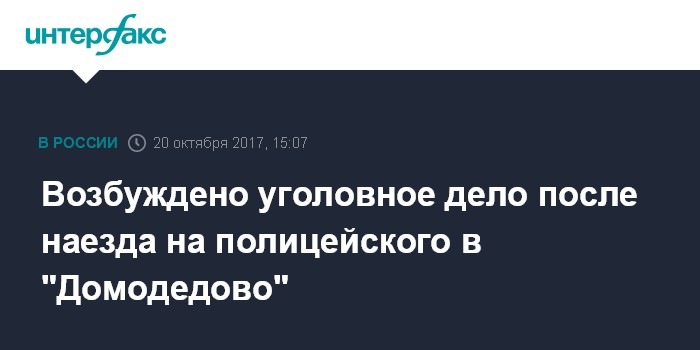 Москва. 20 октября. INTERFAX.RU - Следователи завели уголовное дело по факту наезда таксиста на полицейского в аэропорту "Домодедово" в Москве. Об этом сообщила "Интерфаксу" в пятницу представитель столичного управления на транспорте Следственного комитета Елена Марковская.