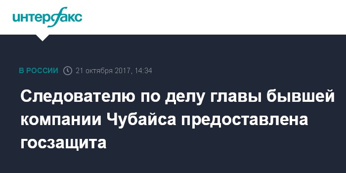 Следователю по делу главы бывшей компании Чубайса предоставлена госзащита