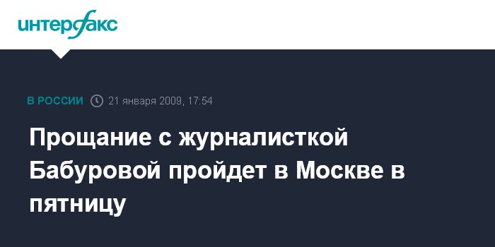 Прощание с журналисткой Бабуровой пройдет в Москве в пятницу